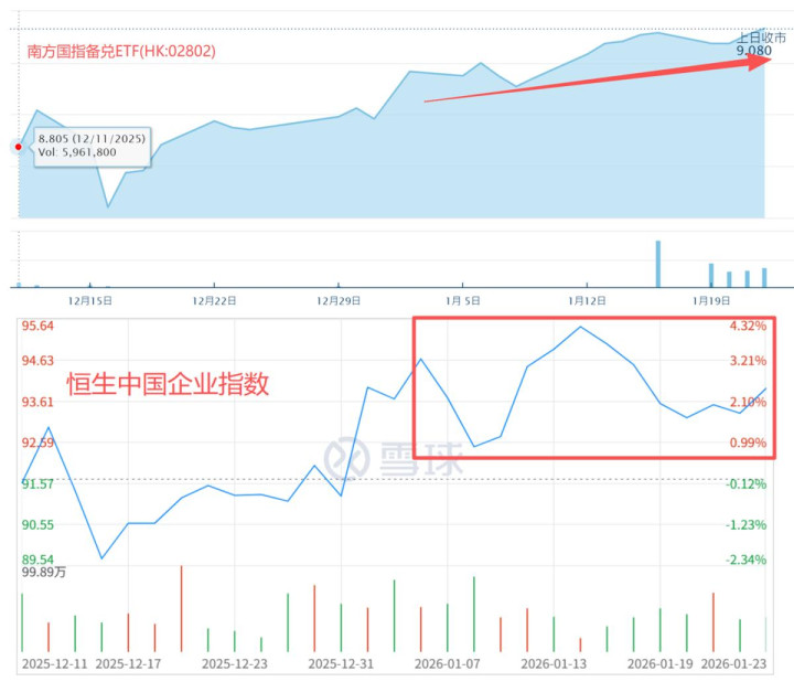 我看了一下,2025.12.11-2026.1.23这一个多月时间,恒生中国企业指数涨幅2.47%,而南方国指备兑ETF的涨幅有3.41%。