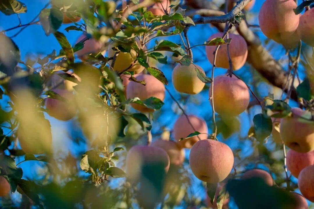 红彤彤的富硒富士、脆嫩的王林等苹果缀满枝头